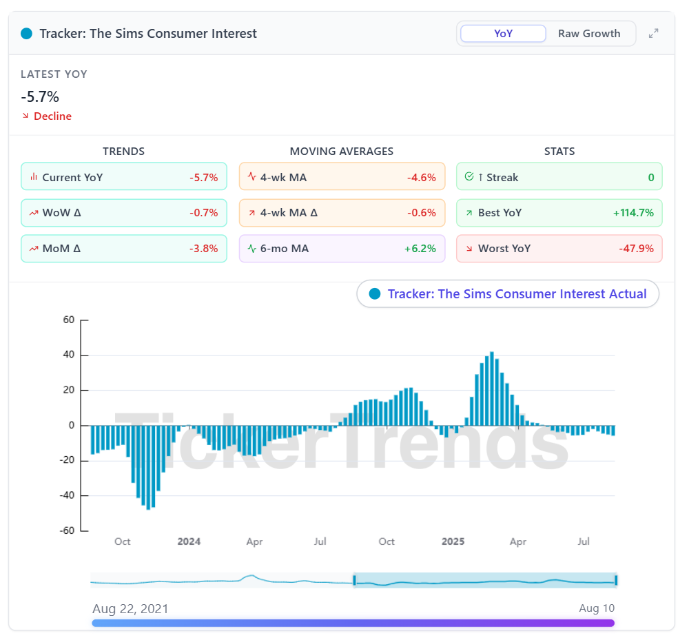 Our tracker also indicates a more of less flat YoY reading for The Sims.