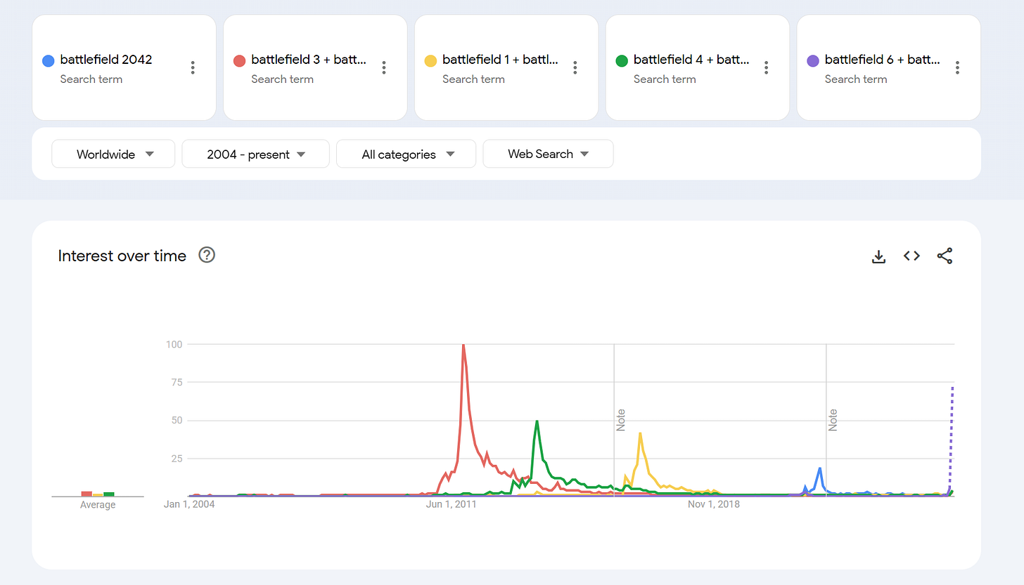 Present day (Battlefield 6): On track to exceed Battlefield 1 & 4 levels. This would imply ~4M or so copies in potential first week sales on its October 10, 2025 release date if current trends hold.