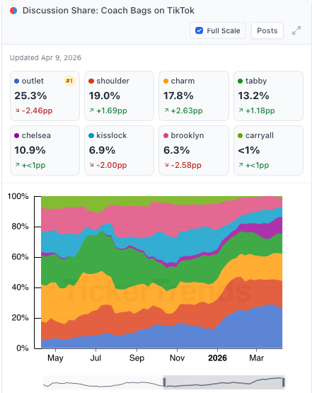 TickerTrends data points to an above-consensus quarter for Tapestry, driven by accelerating demand signals across social share, consumer interest, and product sell-through
