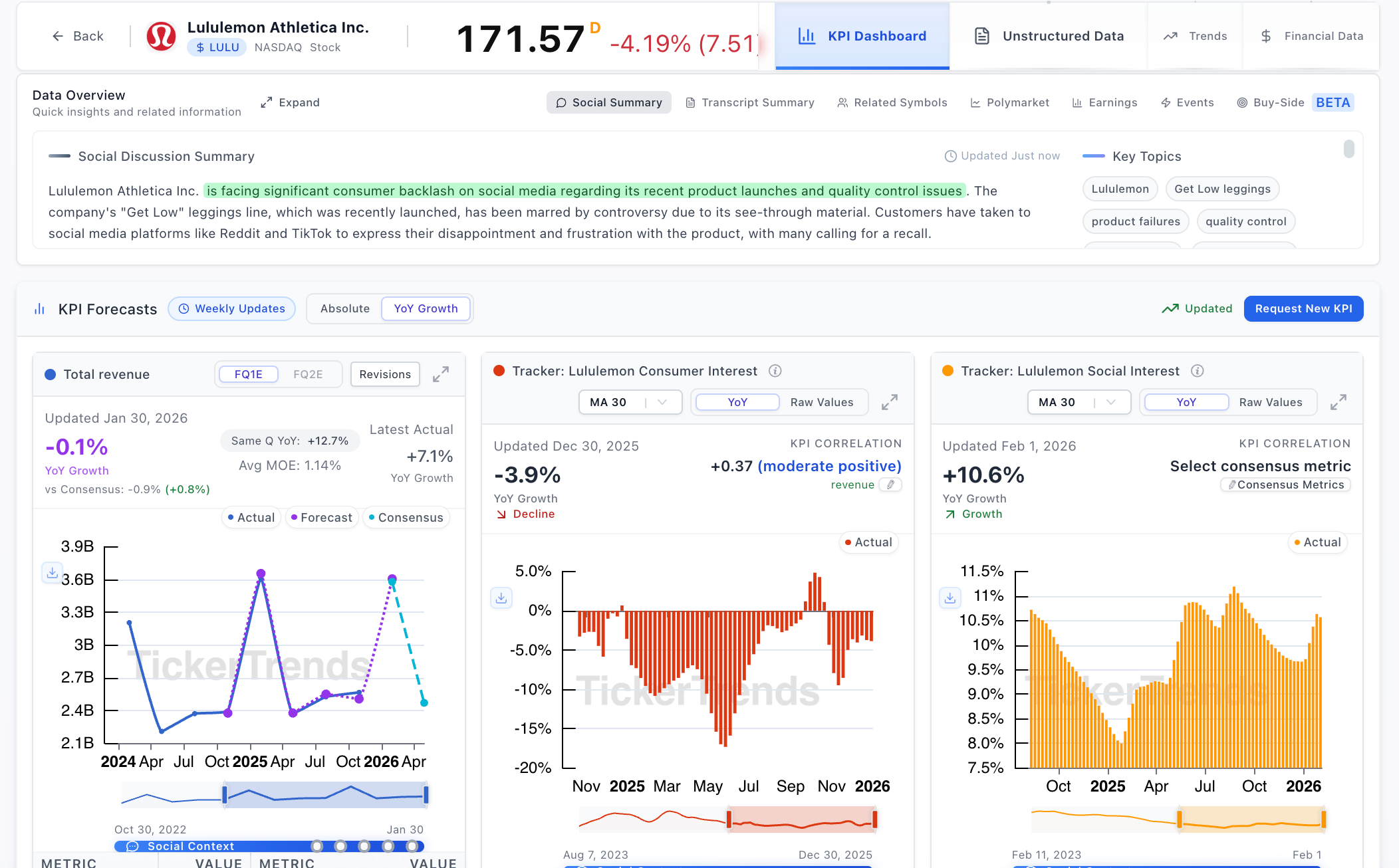 Before revenue shows up in earnings reports, consumers reveal intent through browsing patterns and category exploration. At TickerTrends, we organize and quantify those behaviors into real-time KPIs designed to anticipate demand shifts before companies report results.