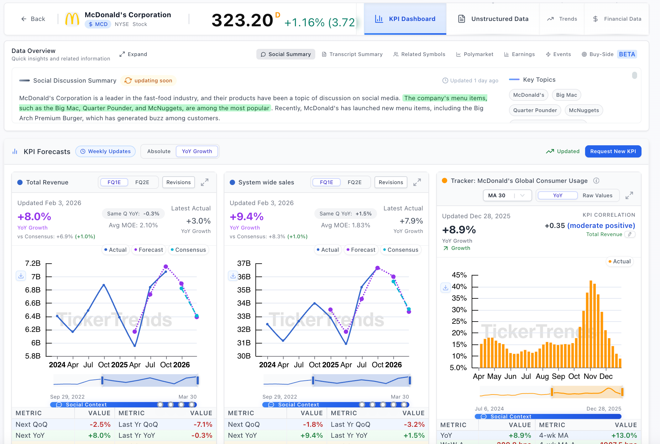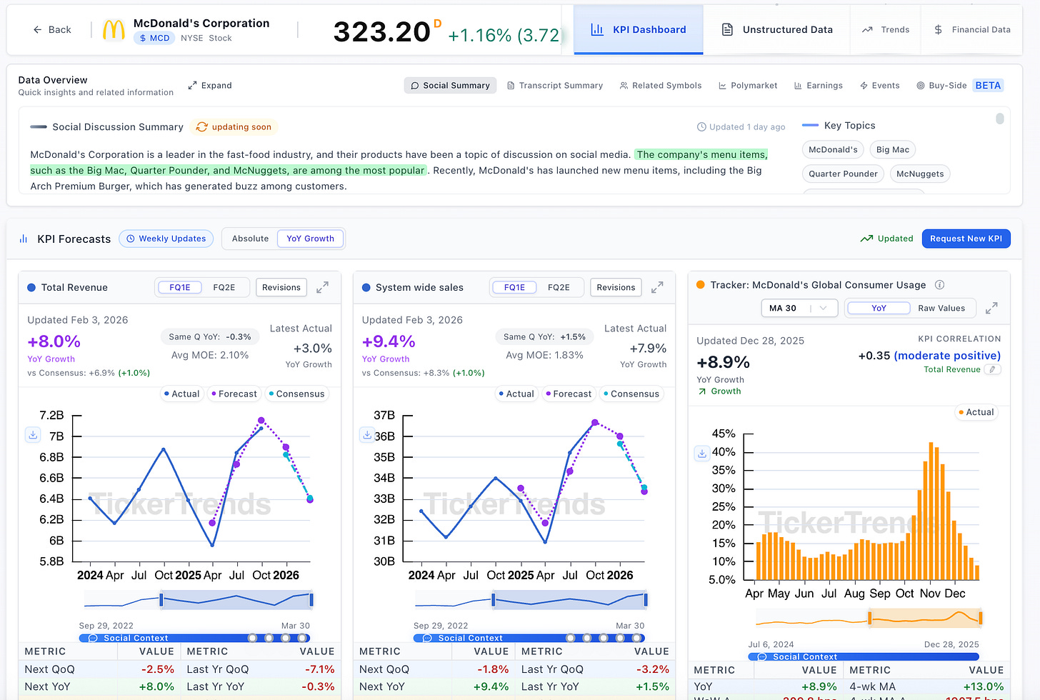 Consumer Staples companies don’t usually surprise investors, but when demand, pricing, or volume shifts, the signals often appear long before earnings. That’s why TickerTrends provides real-time KPI coverage across Food, Beverage, and Household names, capturing how everyday consumption is actually changing in real time.
