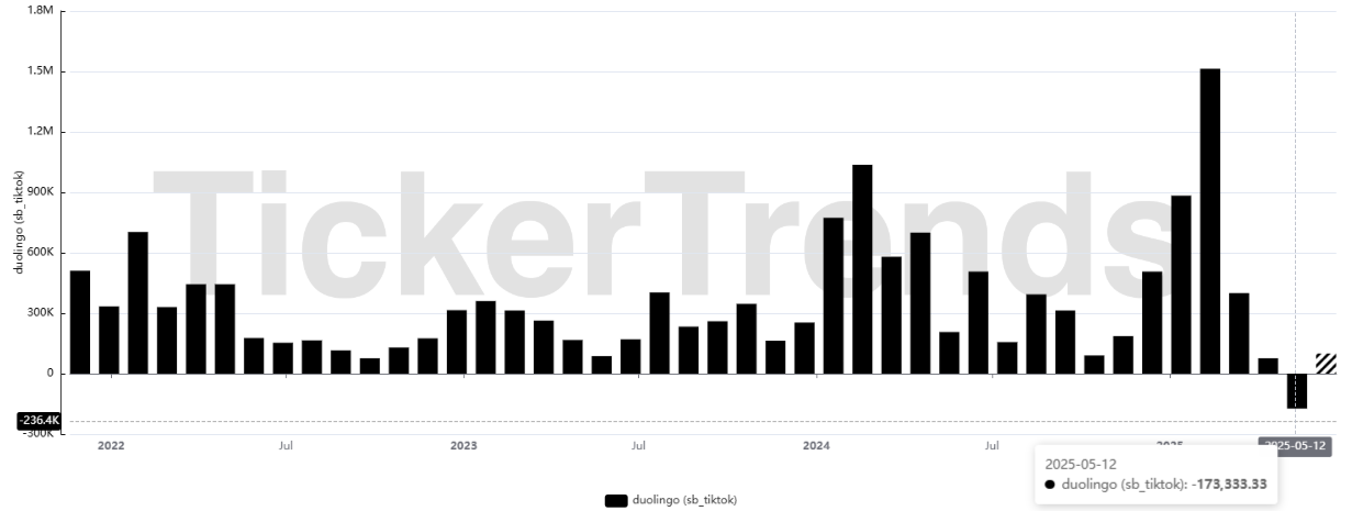 Quantifying this sentiment erosion, Tickertrends data shows that Duolingo’s TikTok account lost nearly 200,000 followers in May alone—a rare occurrence for any brand on a growth trajectory, let alone one that just posted record earnings. The same trend extended to Instagram, where the company saw a net loss of approximately 80,000 followers during the same period. This was not due to an algorithm change or external platform issue, but rather appeared driven by user backlash.