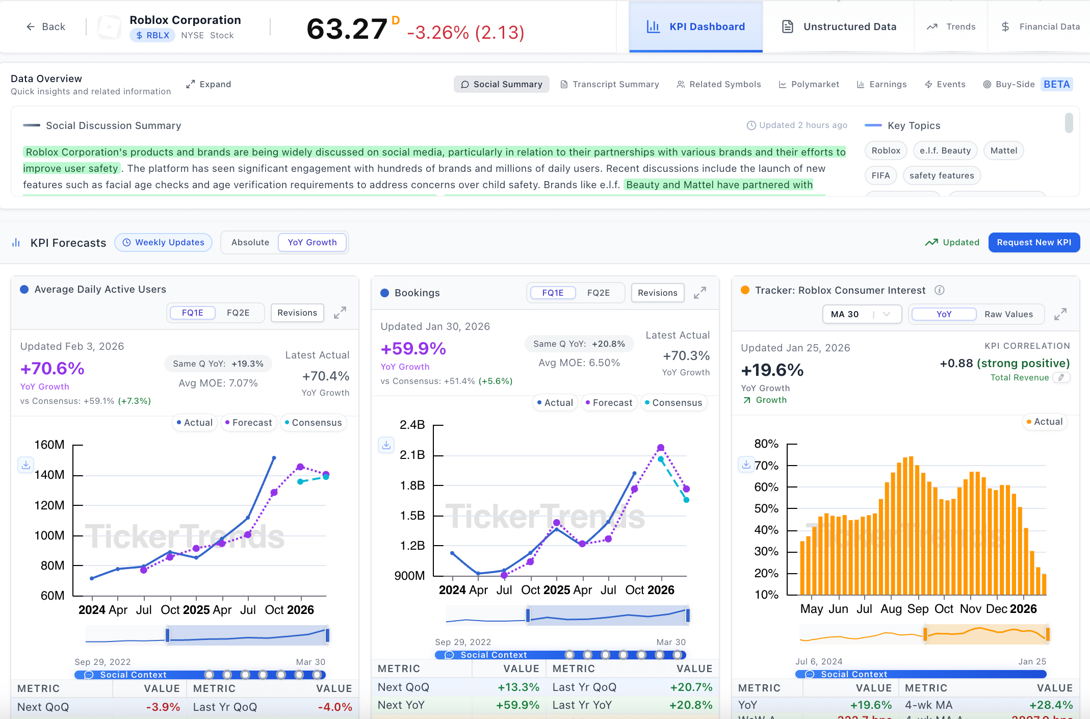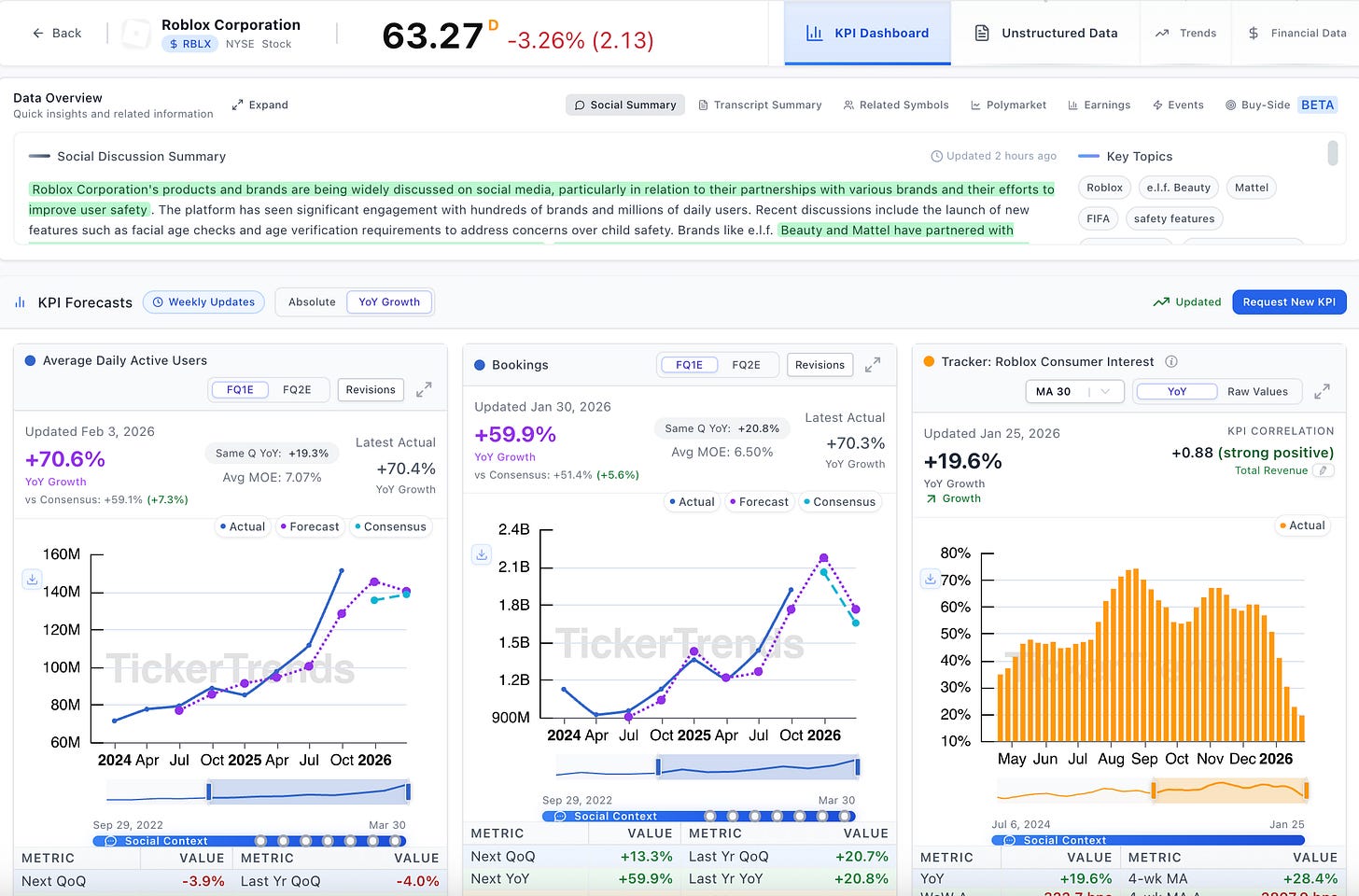 Gaming and digital worlds are built on how users play, interact, and spend time. TickerTrends brings transparency to that behavior by tracking the KPIs that matter most across gaming, entertainment, and virtual ecosystems.