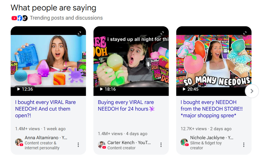 TikTok, Amazon, and Google Search volume has skyrocketed for “needoh” over the quarter.