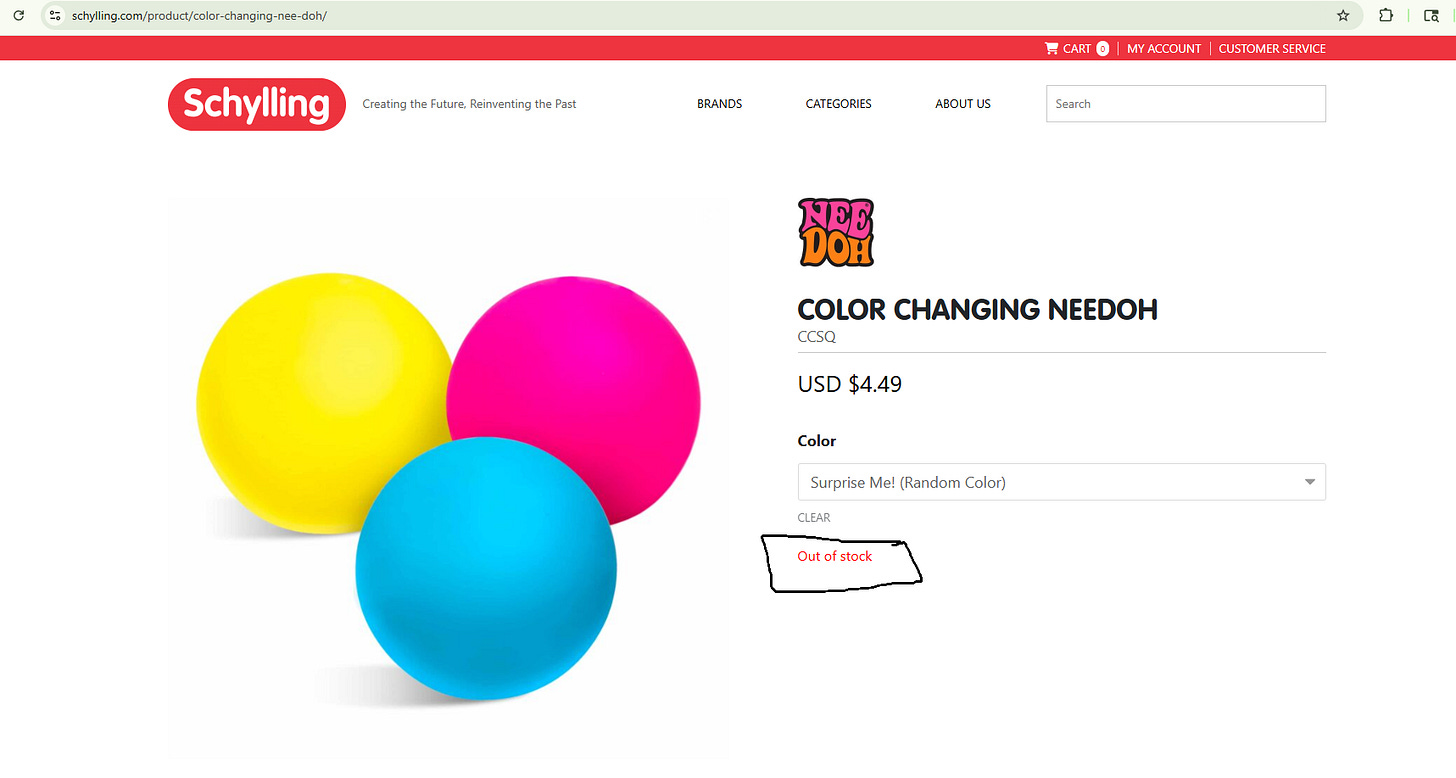 Almost all items are out of stock at the current moment, including, non-Nee Doh products.