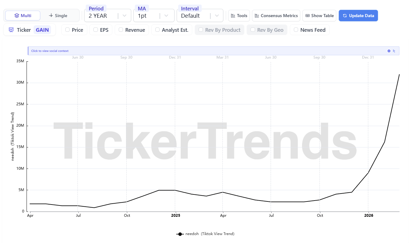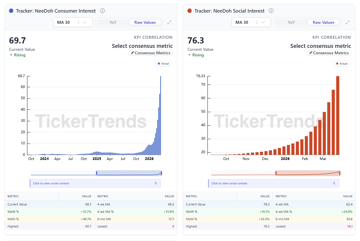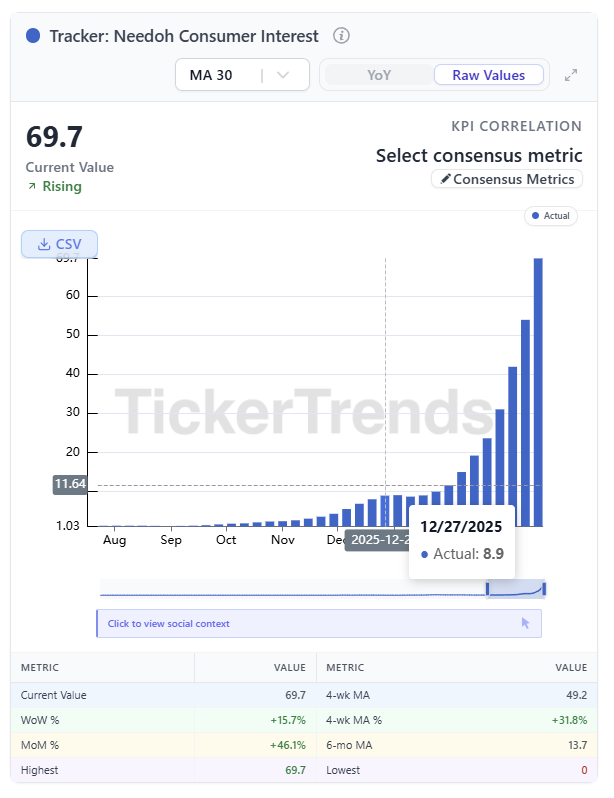 Our NeeDoh consumer interest tracker registered a roughly 4x increase during Q4 2025 alone, moving from approximately 2 to 8 on a normalized basis.