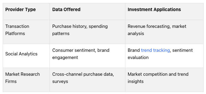 Here’s a breakdown of how different types of consumer data providers contribute to investment research: