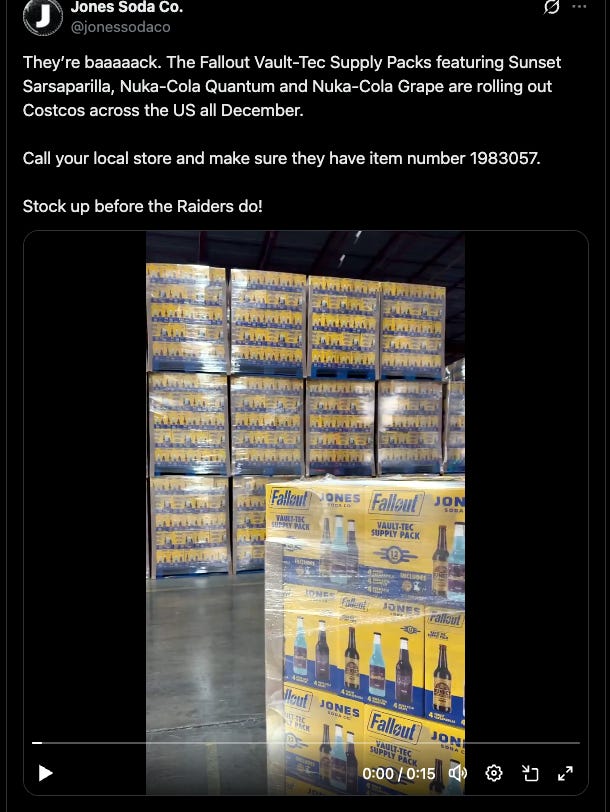 Novelty to National Scale: Unlike previous limited-run drops, this collaboration features a massive brick-and-mortar footprint. The “Vault-Tec Supply Pack” (a 12-pack sampler) launched nationwide at Costco in December after a regional test run sold out in days. This moves the product from a niche online collectible to a high-volume mass-market SKU.