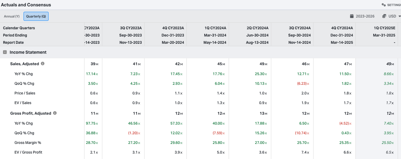 Analysts expect 8.66% YOY growth which is an acceleration of 3.34% QoQ going into Q1 2025.