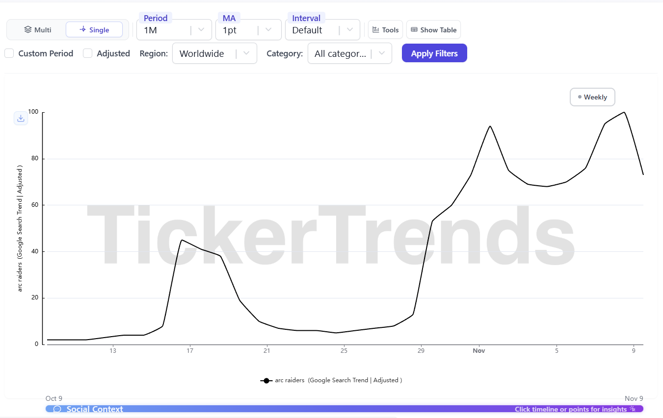 Arc Raiders Google Search interest is holding up beyond the initial week hype (Oct 30 - Nov 6) — an extremely positive sign.