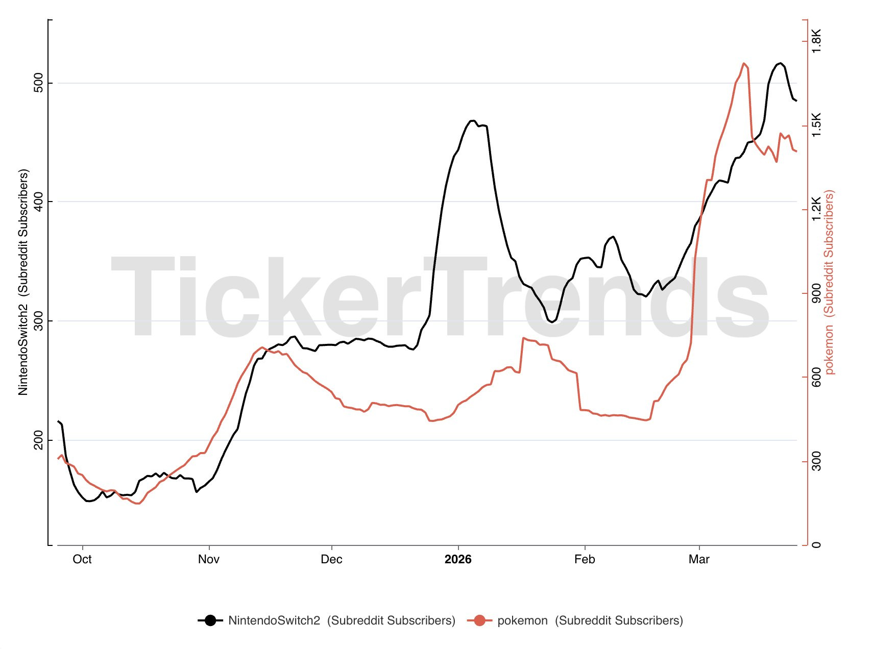 This has translated into a re-acceleration in follower adds across both NintendoSwitch2 and Pokémon subreddits.