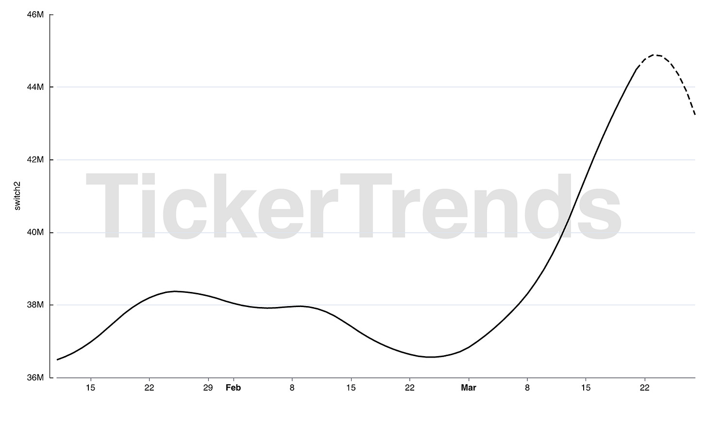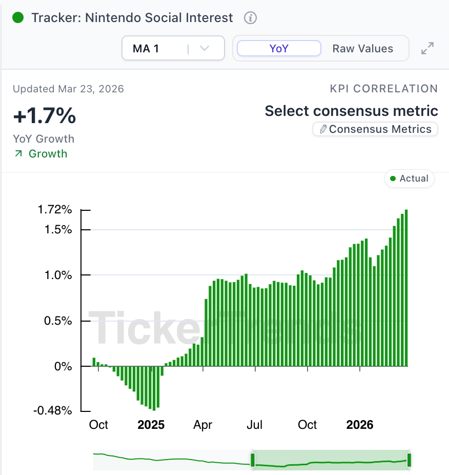 Despite reports of a ~30% production cut for Switch 2, real-time demand indicators have re-accelerated following the launch of Pokémon Pokopia, suggesting current expectations may not fully reflect the recent re-acceleration in demand.