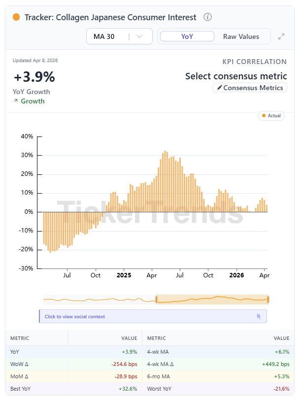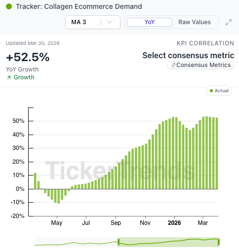 Collagen: +3.9% YoY, stable but not accelerating