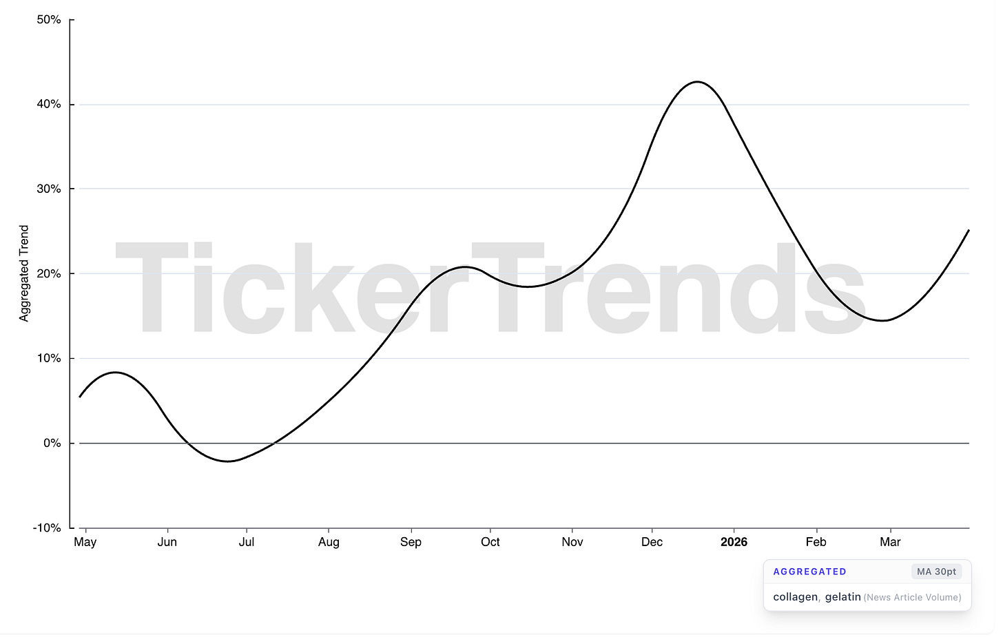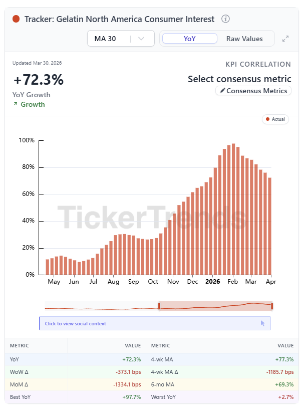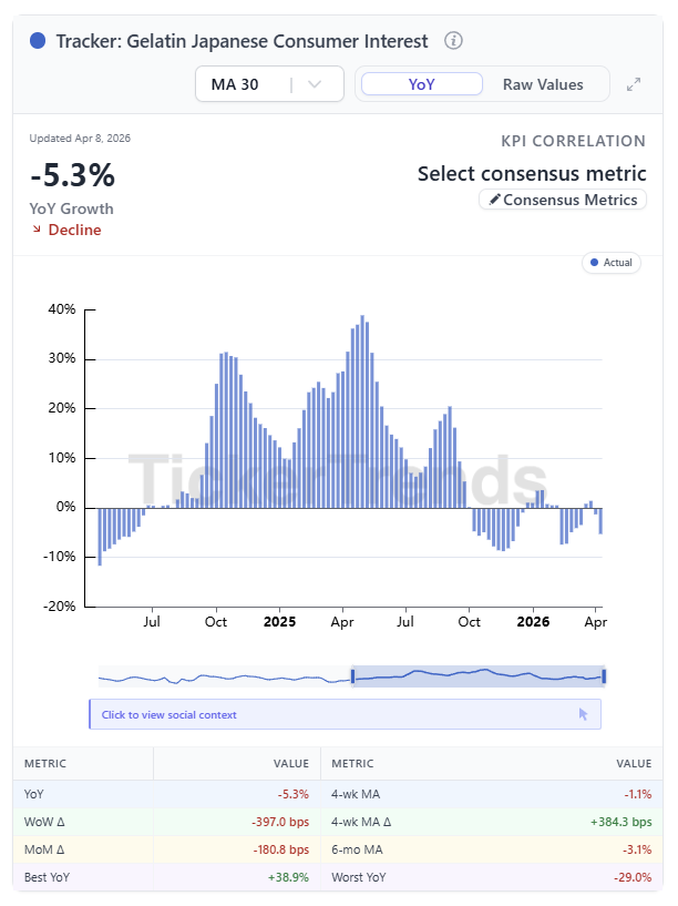 TickerTrends data shows material acceleration in gelatin and collagen demand in North America, not yet fully reflected in Nitta Gelatin’s guidance.