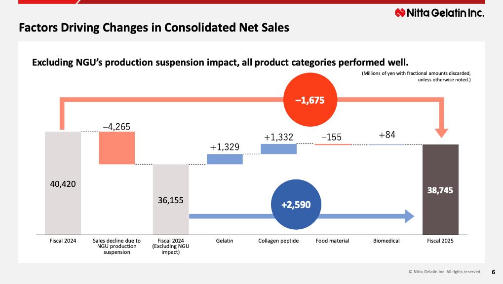 Gelatin: 20,360M yen, down 6.9% YoY (Due to NGU Closure)