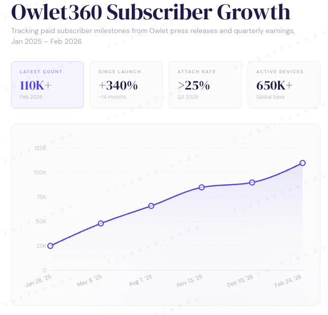 Owlet360 subscriber disclosures throughout 2025 and into early 2026 point to sustained subscription scaling following the U.S. launch, with continued expansion post–international rollout. More importantly, third-party demand indicators across app rankings, Amazon velocity, search behavior, and mobile usage trends provide external validation of that trajectory.