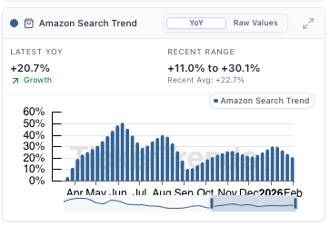 Owlet-related Amazon search volume remains positive at +20.7% YoY.