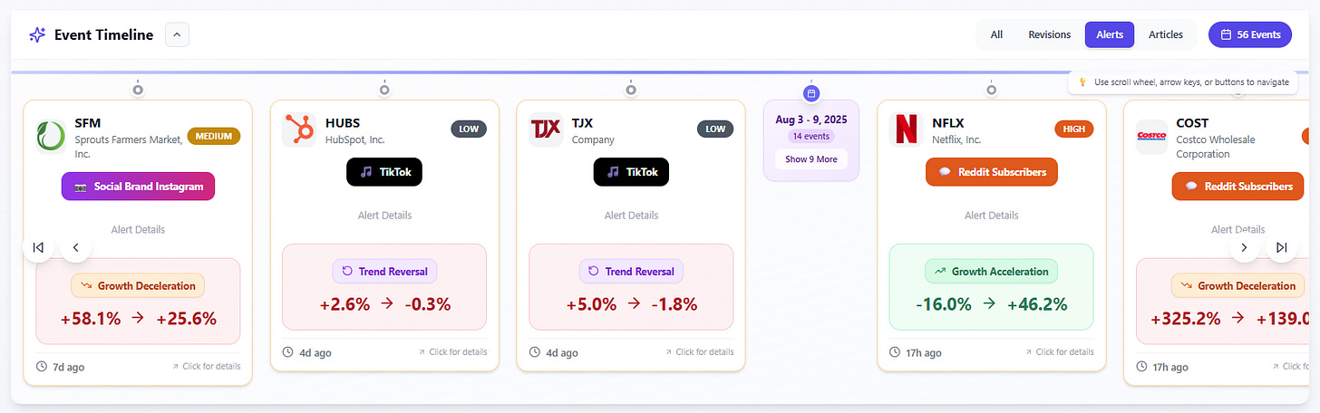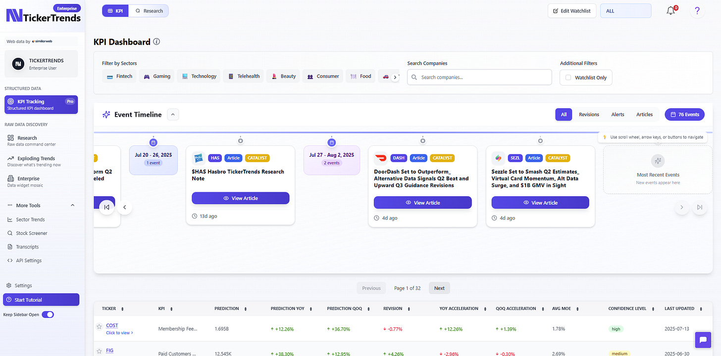 These updates were designed to give investors faster, smarter insight across our entire data universe. Whether you’re tracking earnings setup, staying on top of consumer momentum, or looking for under-the-radar inflections, the new features make the platform more powerful than ever.