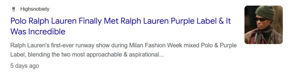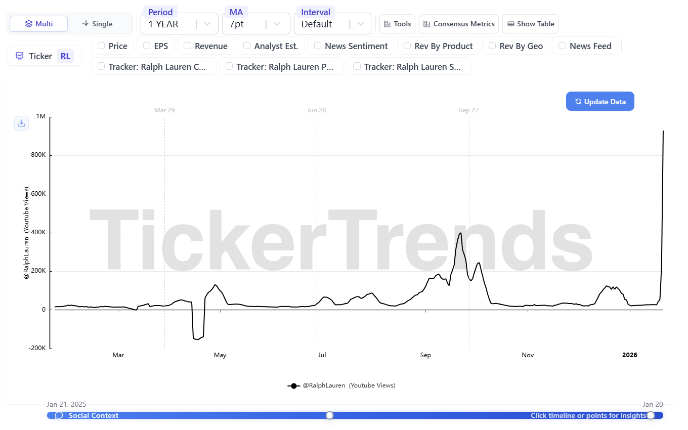 Notably, just days ago in Milan, Purple Label held its first-ever runway show, which drove a visible spike in Ralph Lauren–related YouTube views. These types of brand moments have the potential to translate into longer-term demand so we will have to continue to track the data as it evolves.