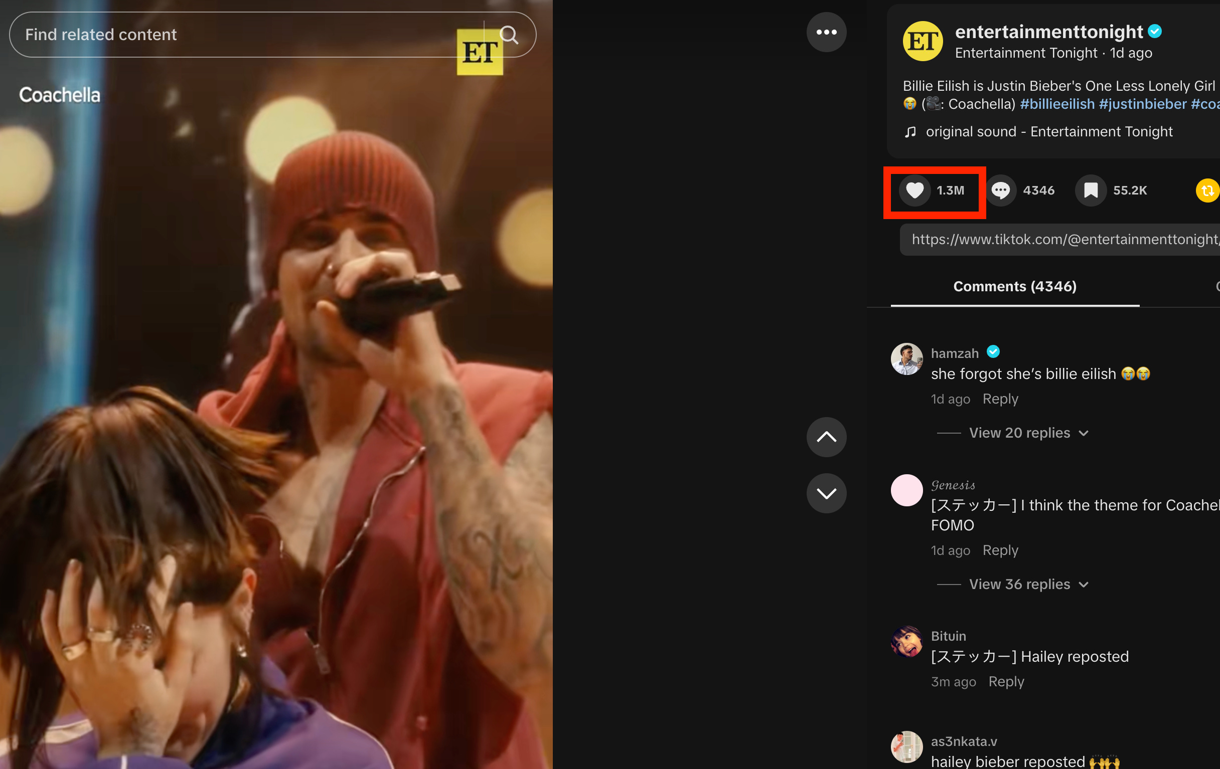 The moment spread within hours and generated hundreds of millions of impressions, quickly earning the nickname “Bieberchella.”