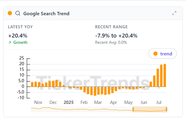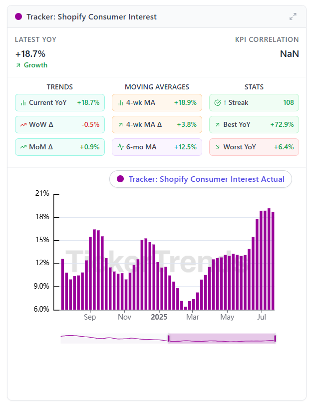 Google Search Trends for Shopify hit a new yearly high in July, up +20.4% YoY