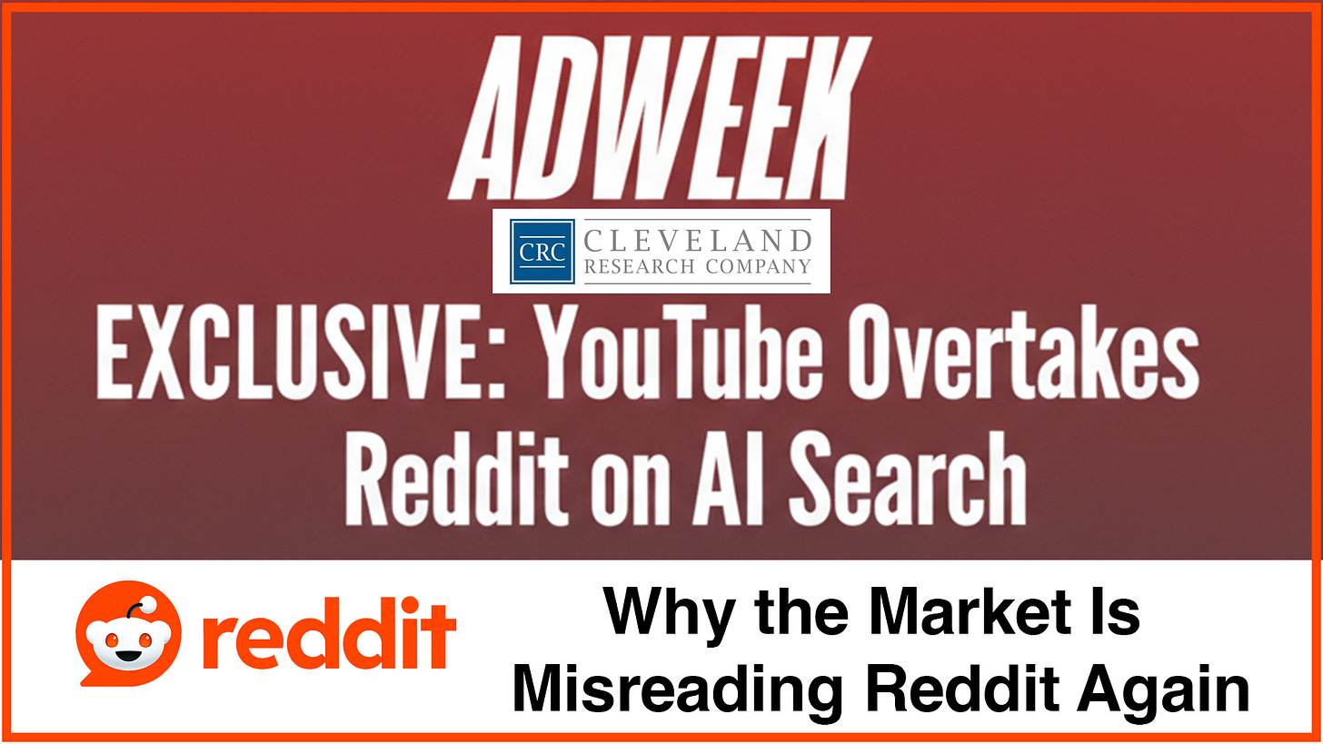 Headlines amplified fears of structural ad weakness, especially with YouTube “overtaking” Reddit in AI relevance.