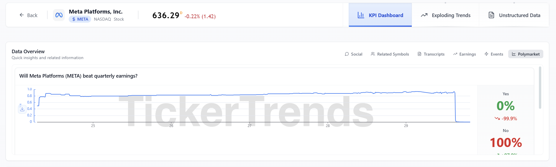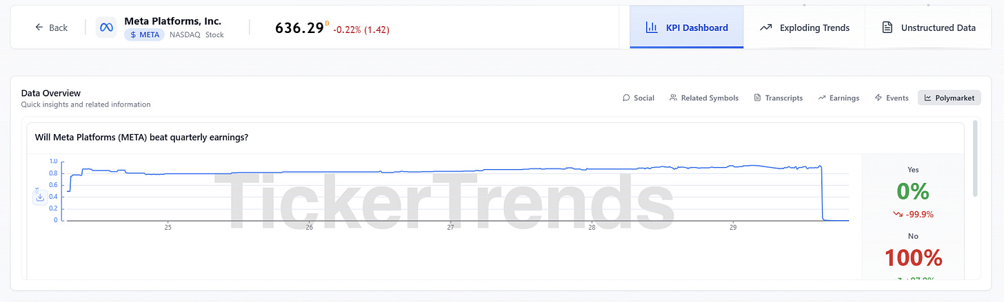 We have integrated data from Polymarket, a prediction platform that reflects real-time market expectations around corporate earnings outcomes.