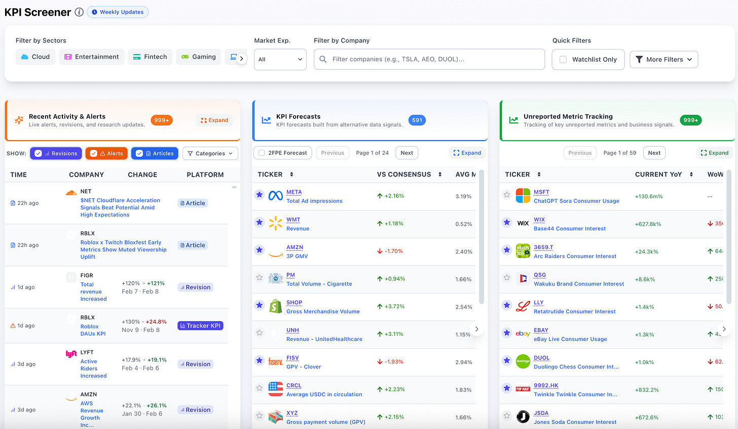 If you’d like to see how these KPIs fit into your research workflow, or want a walkthrough of coverage for specific tickers, we’re happy to set up a quick call.