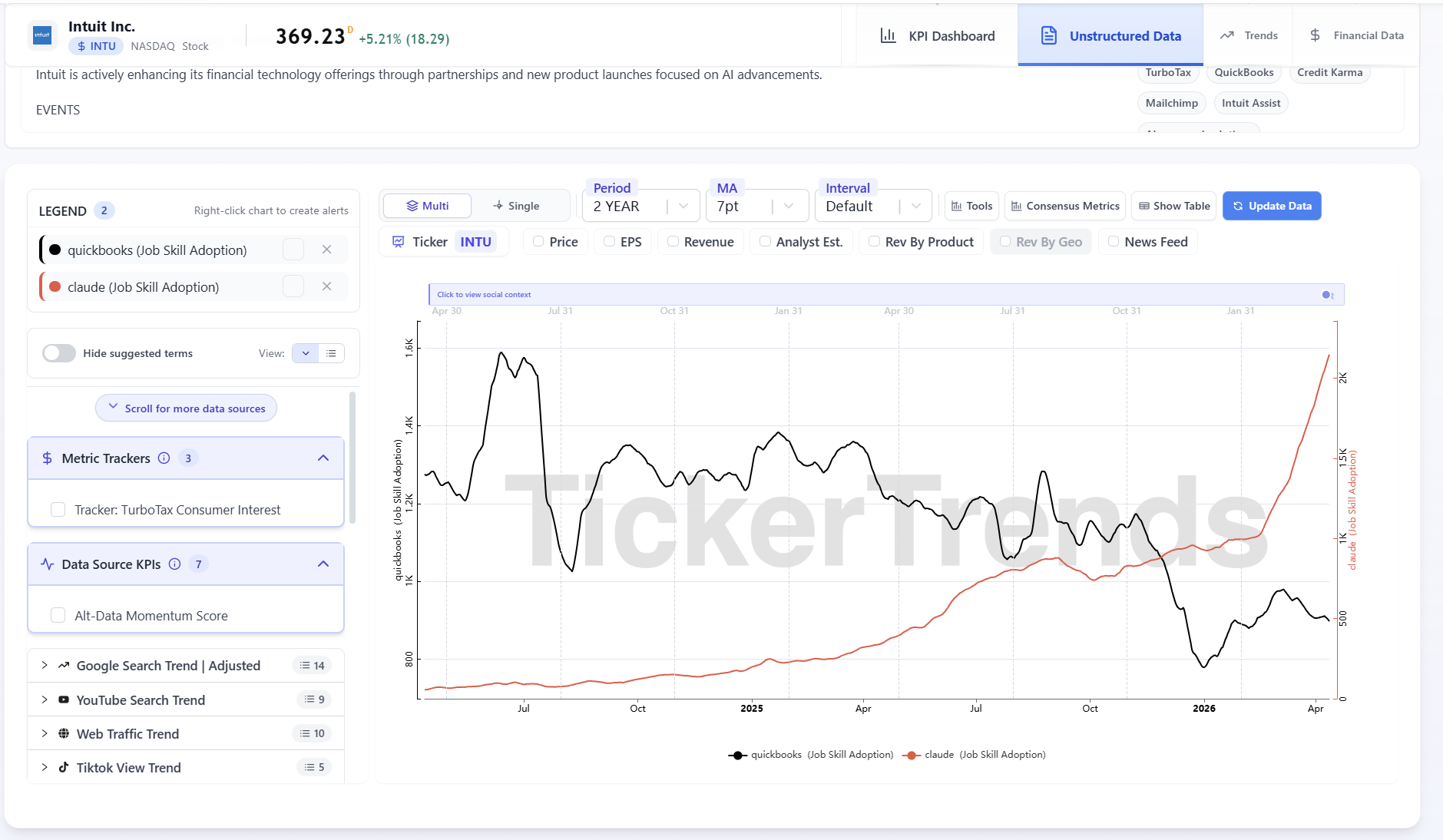 TickerTrends Enterprise provides access to tracking and forecasting across 500+ public company KPIs, alongside actionable, data-driven research.
