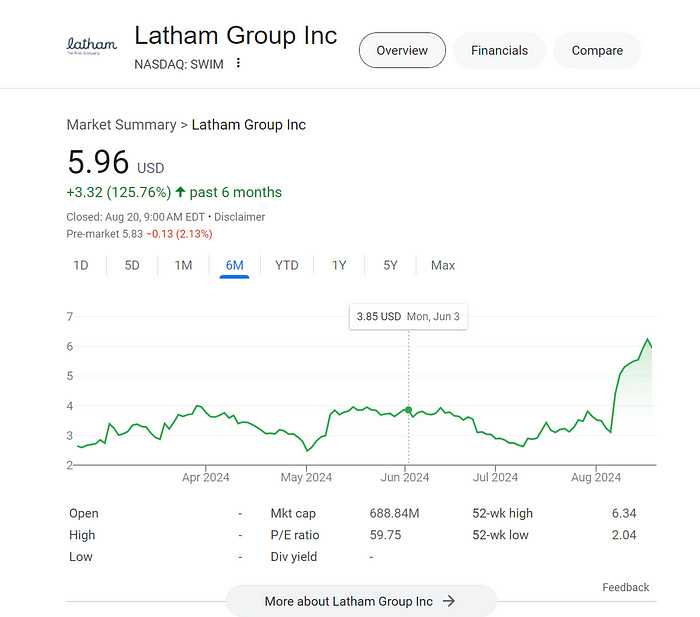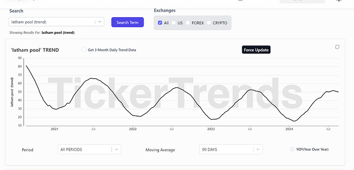 We can also utilize the TickerTrends Alert system to know when a turning point in any data source is happening. For example, Covid saw a surge in backyard pool installations. A lot of pool-related stocks experienced somewhat of a bubble as a result. Let’s take $SWIM as an example.