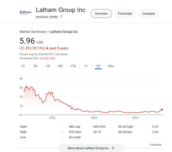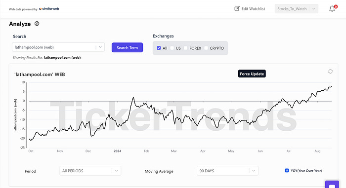 Looking at the website traffic data on TickerTrends by typing “lathampool.com (web)” investors were able to see signs of stabilization of year-over-year, moving average smoothed data.