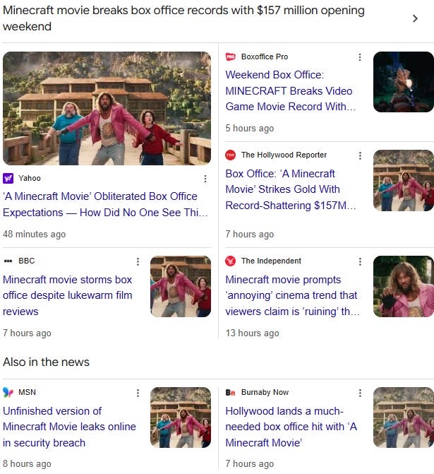 Minecraft’s cinematic debut is experiencing explosive success. First and foremost, the film’s $301 million global debut — $157 million of which came from domestic ticket sales — is the studio’s biggest opening since Deadpool & Wolverine in July 2024 and now holds the record for the highest domestic opening of any video game adaptation. This windfall gives Warner Bros. much-needed momentum after a difficult start for cinemas in 2025, which had been marked by underperforming releases like Snow White and Mickey 17. With the box office down 13% year-over-year before Minecraft, the film’s success narrowed the deficit to just 5% and revived confidence across Hollywood that theatrical releases can still be major cultural and financial events.